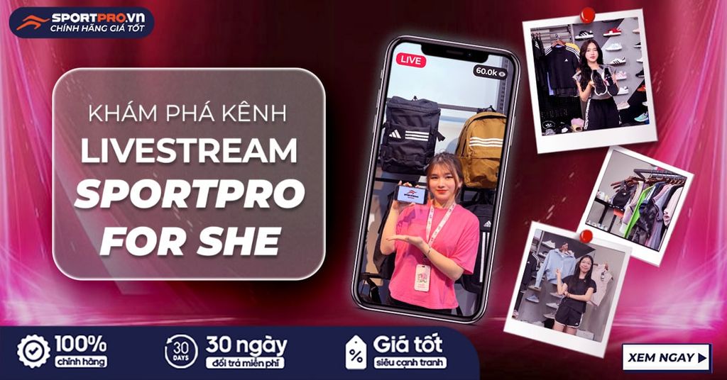 Kênh TikTok Sportpro for She là kênh mua sắm lý tưởng cho phái đẹp yêu thích thời trang thể thao adidas chính hãng với mức giá cực kỳ ưu đãi! Tại đây, bạn sẽ có cơ hội sở hữu những sản phẩm thể thao adidas chính hãng với voucher khuyến mãi hấp dẫn, cùng trải nghiệm mua sắm trực tuyến tiện lợi. Cùng Sportpro Blog khám phá ngay những ưu điểm nổi bật chỉ có tại kênh livestream Sportpro for She!